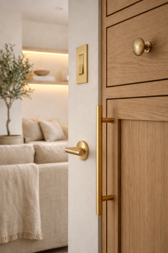 Luxury often comes from the small details. Swapping cabinet handles, drawer knobs, door handles, or even light switch covers can refresh your space. Try modern finishes like matte black, soft gold, or brushed nickel. These small, affordable changes can completely transform a room, because great design always pays attention to details.