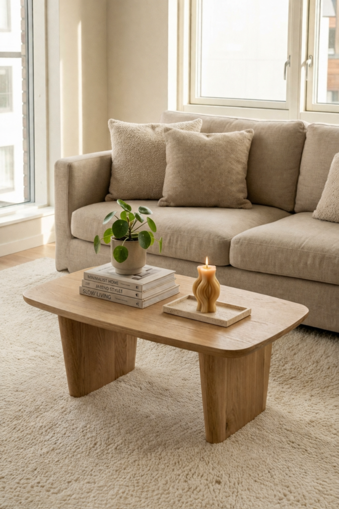 Instead of placing random items on your table, try the designer trick: the 3-item rule. Style with a small plant or flowers, one book or magazine, and a candle or décor piece. For an extra polished look, place everything on a tray, it makes your setup feel neat, balanced, and intentional.