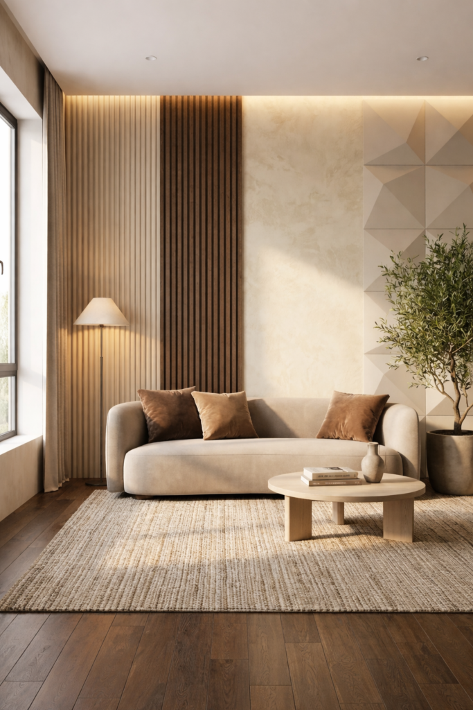 Plain walls are starting to feel boring. Texture is the new trend on Pinterest. Think wooden panels, fluted designs, lime wash paint, or modern 3D wall panels. You don’t need to change every wall, even one textured accent wall can add depth, character, and a designer feel to your space.