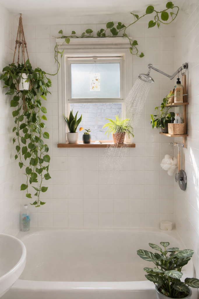 Adding plants is an easy way to make your bathroom feel fresh and relaxing. Low-maintenance options like snake plants, pothos, ZZ plants, and aloe vera grow well in bathroom conditions. Even one small plant on a shelf or counter can bring life to the space and instantly improve your bathroom’s overall design.