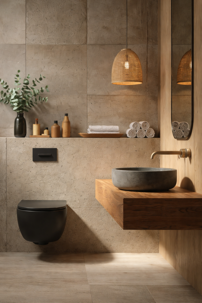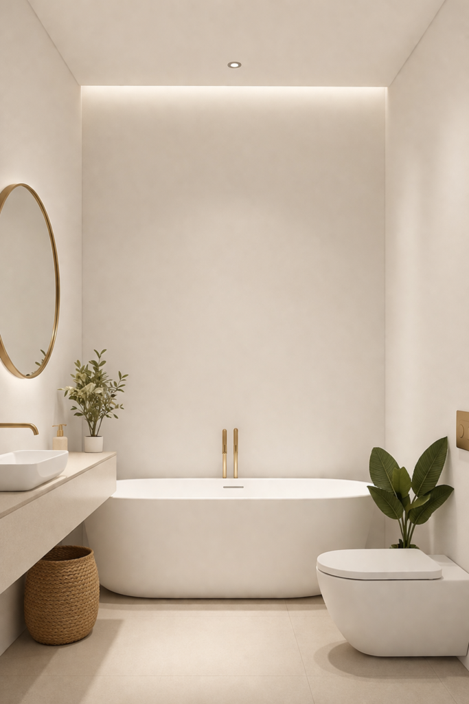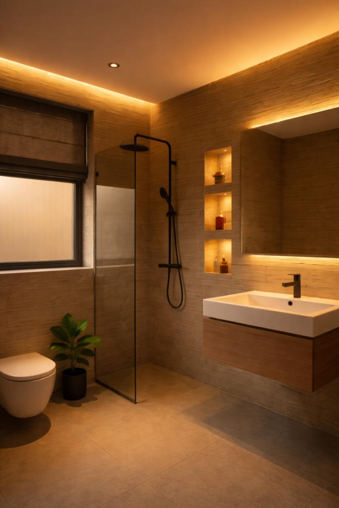You don’t need to paint the entire bathroom to make an impact. Painting just one wall can add depth and personality. Try a dark green accent wall, navy blue for a bold touch, or warm beige for a soft modern feel. This simple idea adds style without increasing your budget.