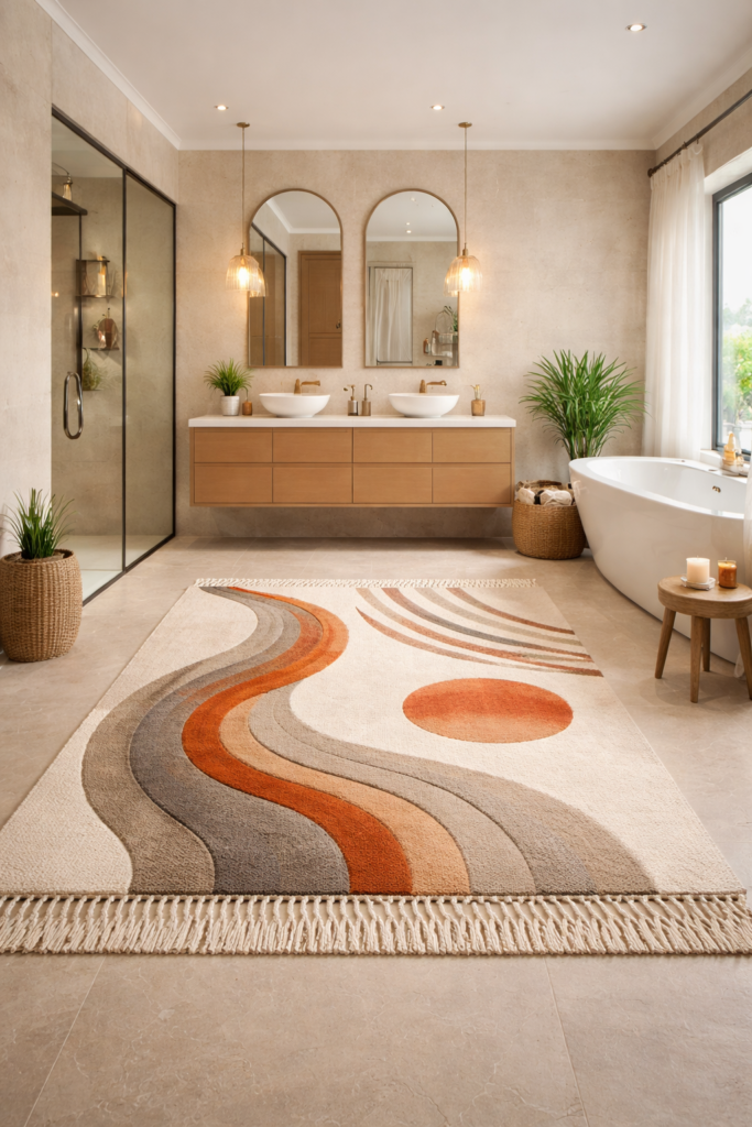Swap your old bath mat for a stylish bathroom rug to instantly upgrade the space. Try neutral textured rugs, small Persian-style designs, or soft cotton spa rugs for a cozy touch. A good rug adds warmth, comfort, and personality, making even a small bathroom feel more inviting and thoughtfully styled every day.
