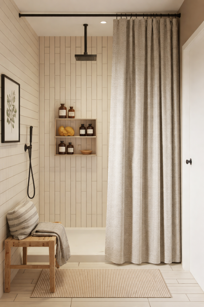 Switching out your old shower curtain is one of the easiest ways to refresh your bathroom. Choose neutral colors, simple minimalist patterns, or a hotel-style white curtain for a clean look. This small, affordable change can instantly make your bathroom feel brighter, fresher, and more modern without spending much money at all.